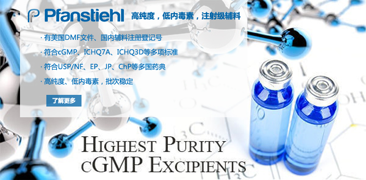 “熱烈祝賀Pfanstiehl的注射級甘氨酸Glycine(G-140)喜獲CDE登記號F20250000403, 這是Pfanstiehl產品獲得的第18個CDE登記號!”甘氨酸在醫藥輔料制劑中應用廣泛,, 可作為緩沖劑,增溶劑,穩定劑等,具有諸多優勢。Pfanstiehl秉承一貫高品質理念,為滿足全球生物制藥行業對于高品質甘氨酸的需求,隆重推出的注射級甘氨酸Glycine (G-140), 具有超高純度,超低內毒素,超低金屬殘留的特點,單獨檢測29種金屬離子,并且新增DNA,RNA,DNA酶,RNA酶和脂肪酶,亞硝酸鹽等多項質量指標的檢測,符合多國藥典規定(USP, EP, BP, JPE, ChP),可用于生物治療性藥物和疫苗的生產。產品信息:· 產品名稱:Glycine, High Purity, Low Endotoxin, Low Metals, USP, EP, BP, JPE, ChP (G-140)· 中文名稱:甘氨酸· 分子式:C2H5NO2· 分子量:75.07 g / mol· CAS號:56-40-6· 產品貨號:G-140產品特點: · 超高純度,超低內毒素,超低微生物含量,超低金屬雜質殘留· 質量指標新增DNA,RNA,DNA酶,RNA酶,脂肪酶和亞硝酸鹽檢測· 符合多國藥典:USP, EP, BP, JPE, ChP· 符合ICH Q3D標準· 符合GMP標準· 已獲DMF和CDE登記號 產品應用:· 緩沖劑· 穩定劑· 增溶劑如果您對Pfanstiehl注射級別Glycine G-140感興趣,歡迎聯系Pfanstiehl 中國區代理商北京西美杰科技有限公司獲得如下詳細的產品概況說明文件和測試樣品。Pfanstiehl Inc.最新產品系列如下,歡迎聯系北京西美杰科技有限公司獲取100g裝免費樣品。北京西美杰科技有限公司為Pfanstiehl中國代理,為客戶提供完善的技術支持與售后服務。歡迎撥打西美杰客服電話400-050-4006或者登陸網站www_xmjsci_com.mkmjup.mobi了解更多信息。 更多>西美杰介紹